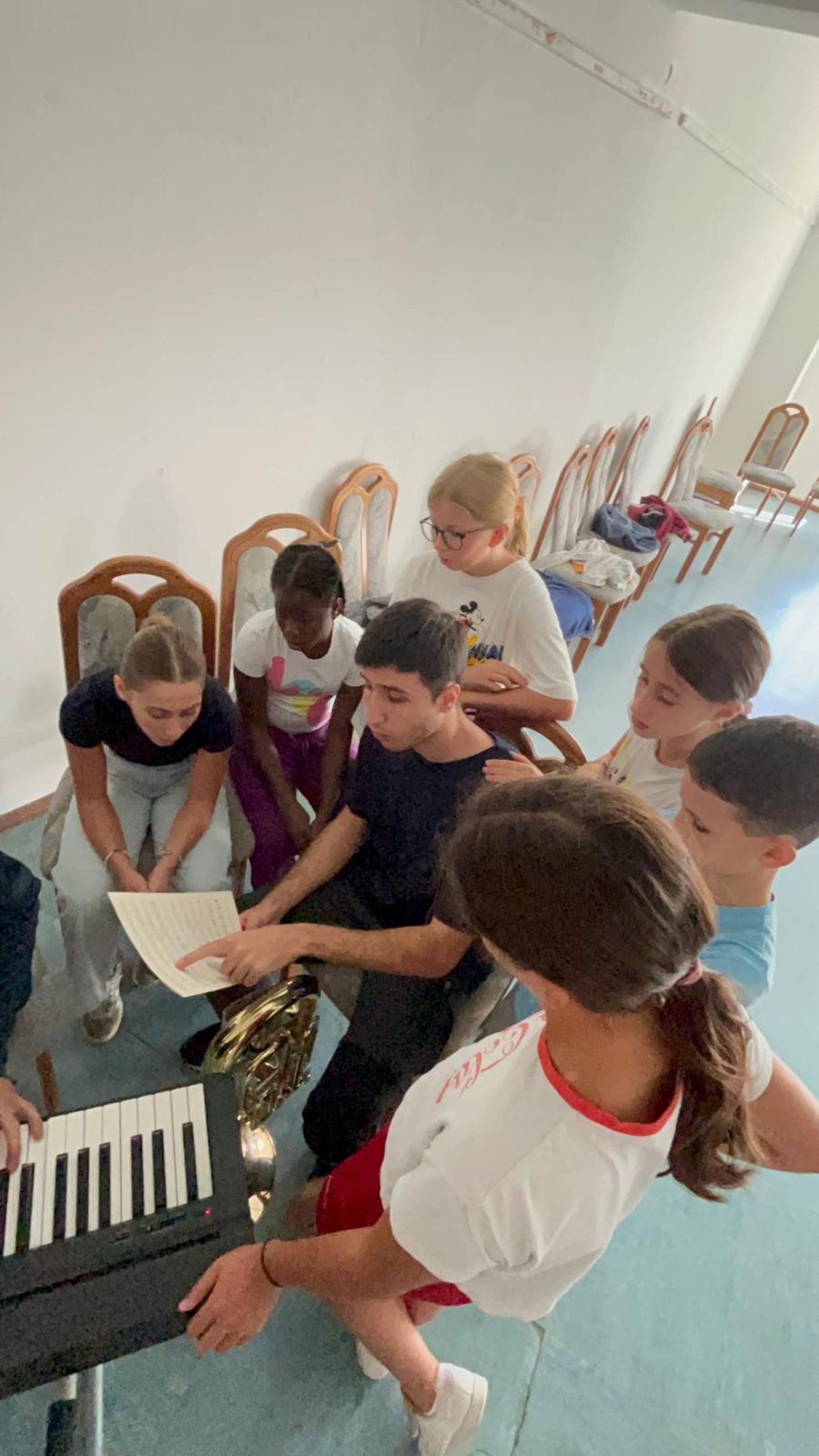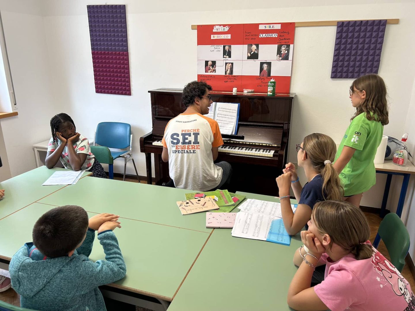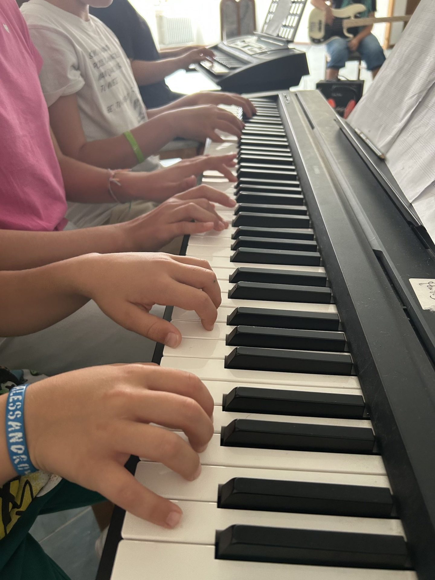 È stata una splendida esperienza che ha visto coinvolti bambini e ragazzini dagli 8 ai 13 anni che, insieme a giovani animatori e docenti di strumento (Nicola Maestri chitarra, Cristiano Marcotti batteria, Lorenzo Geroldi tromba, Lorenzo Piovani pianoforte…) hanno seguito corsi di musica per circa 3 ore al giorno e partecipato a passeggiate, escursioni, giochi all’aperto e al chiuso… il tutto all’insegna della spensieratezza e dell’allegria.